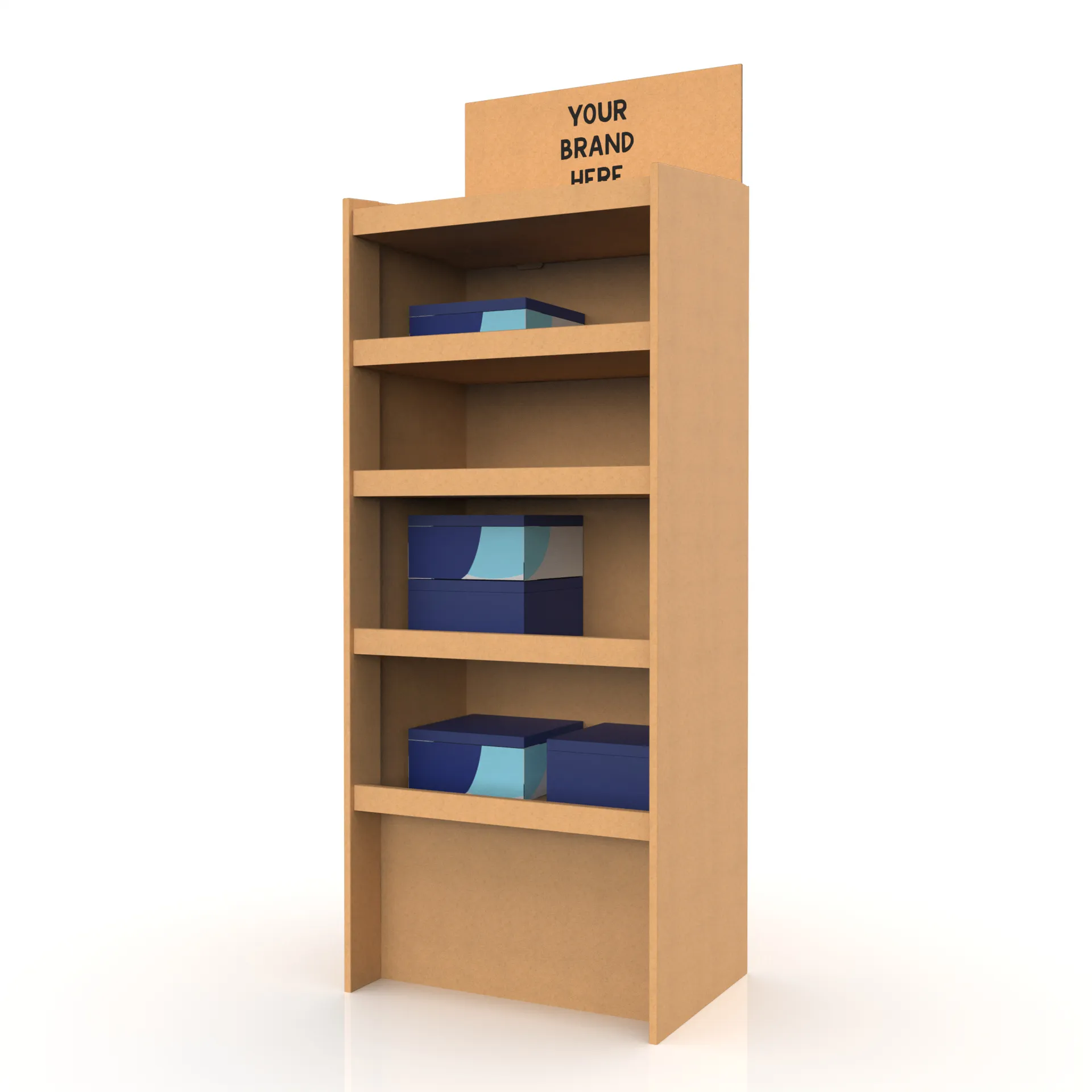 Display-ul din carton Border XL are 5 polițe încăpătoare, ce pot fi poziționate, după necesitate.