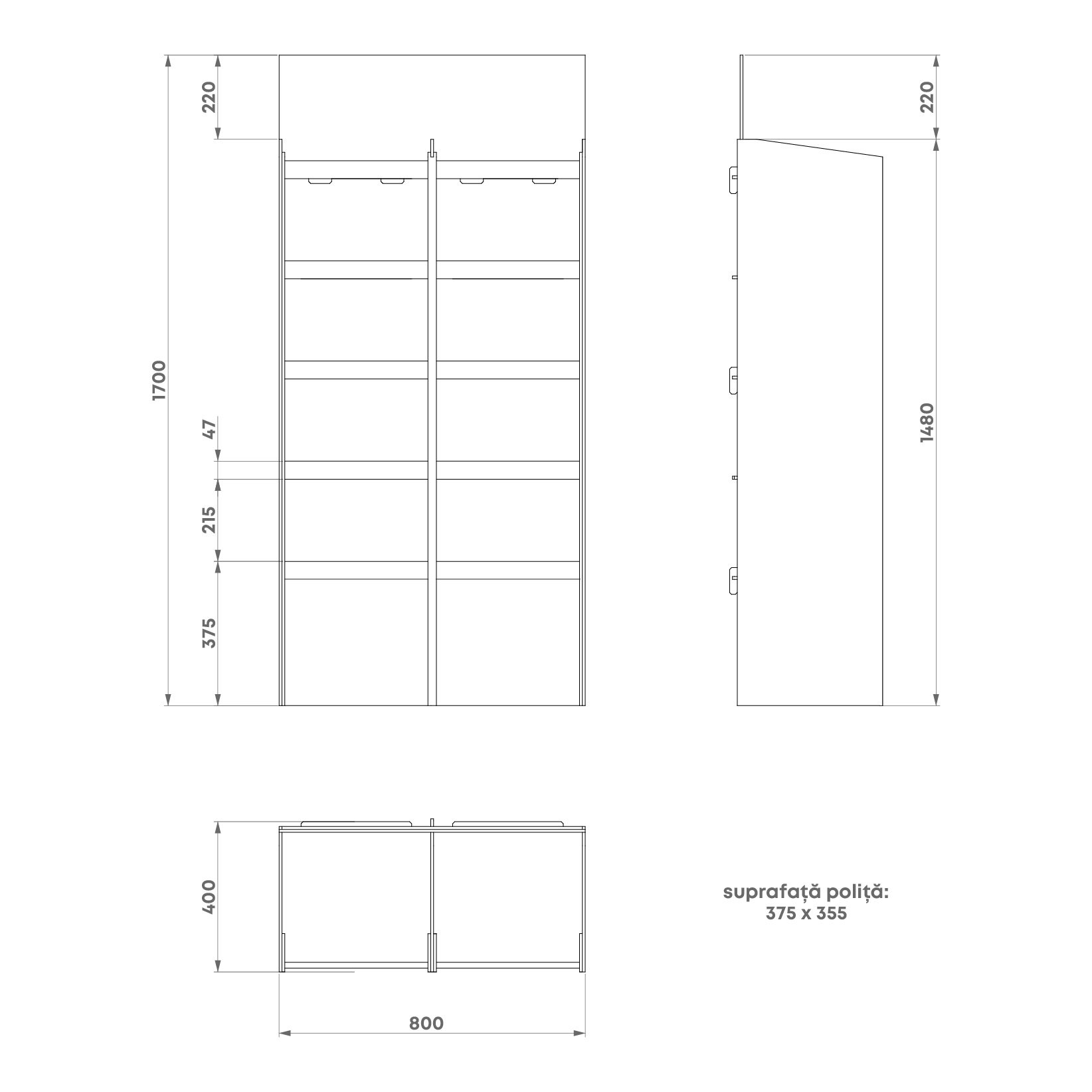 Dimensiuni: L800 x l400 x h1700 mm
