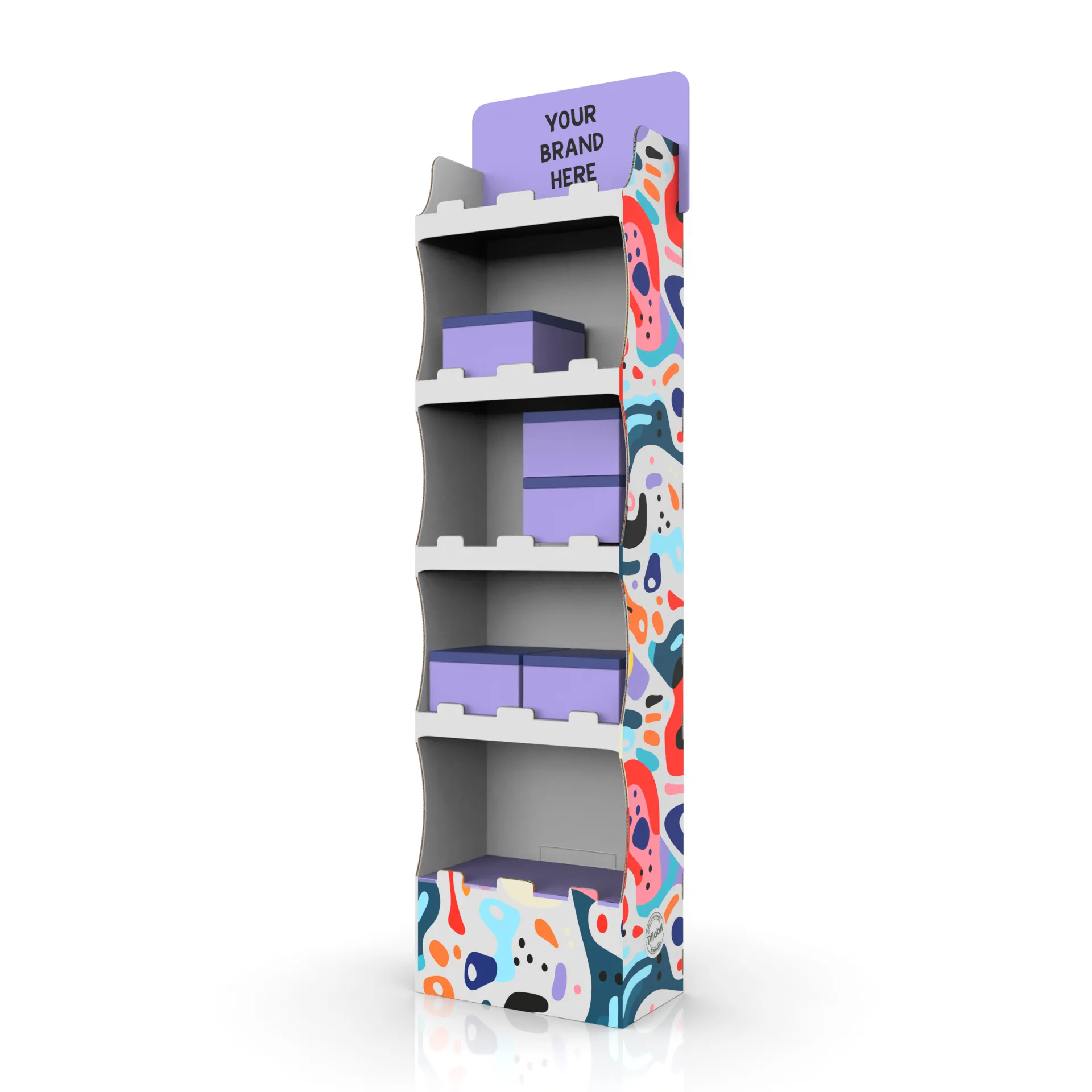 Display-ul Castel Clasic, realizat din carton, este prevăzut cu 5 polițe dispuse simetric. Designul său geometric este echilibrat, dar inedit, pentru o expunere plină de personalitate a produselor.