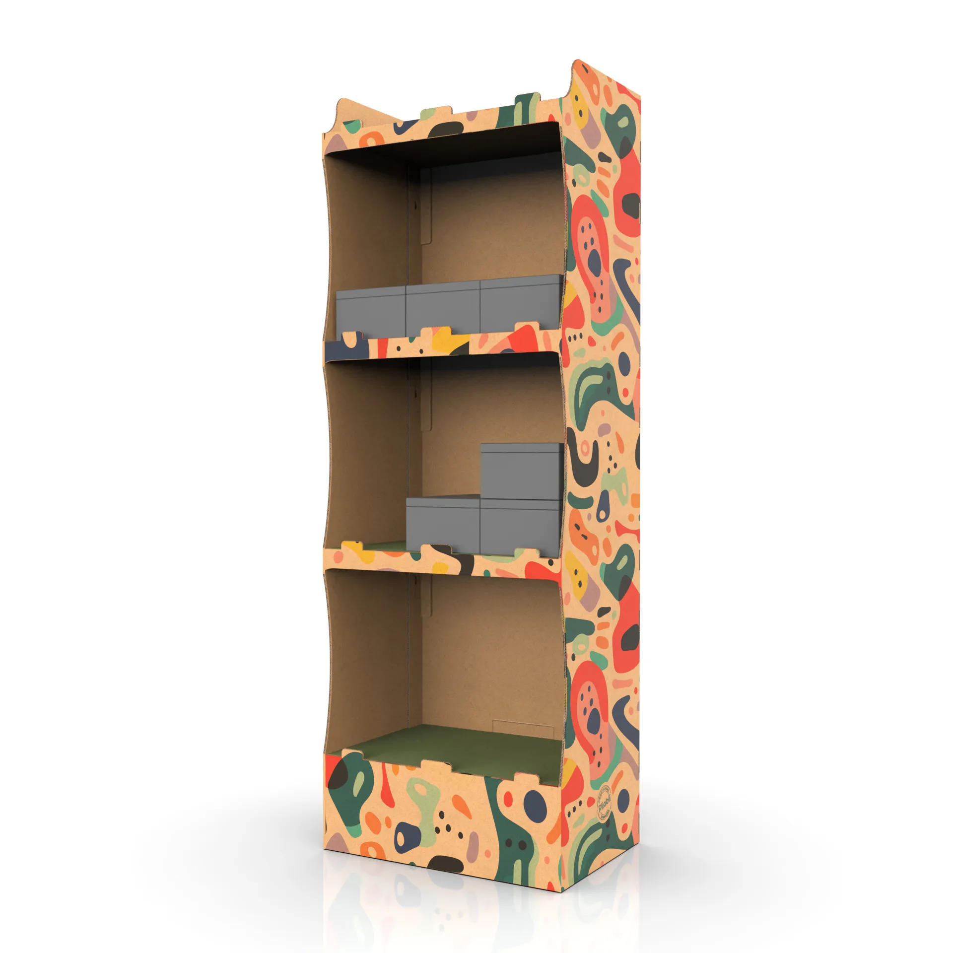 Display-ul Castel XL, realizat din carton, este prevăzut cu 4 polițe dispuse simetric. Designul său geometric este echilibrat, dar inedit, pentru o expunere plină de personalitate a produselor.