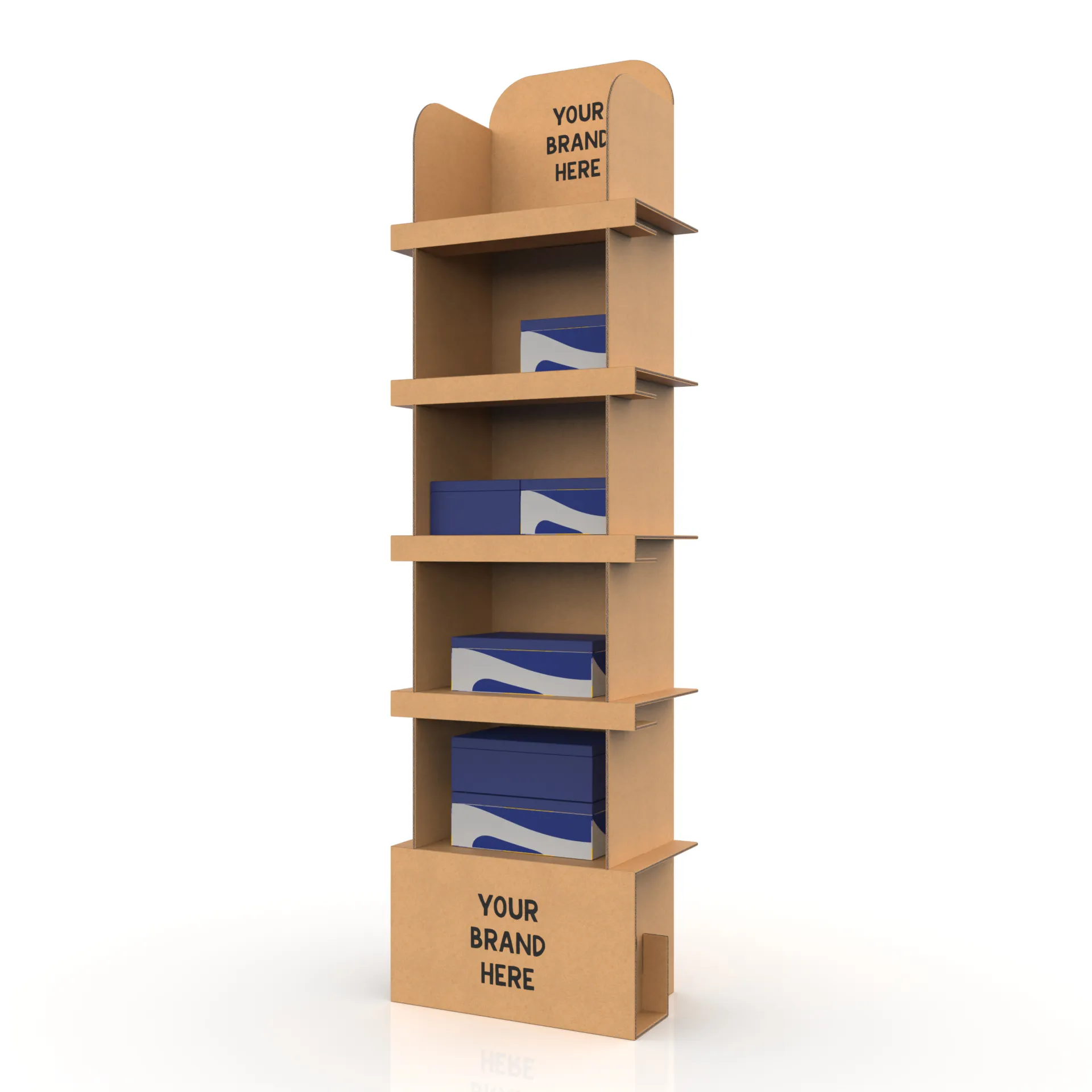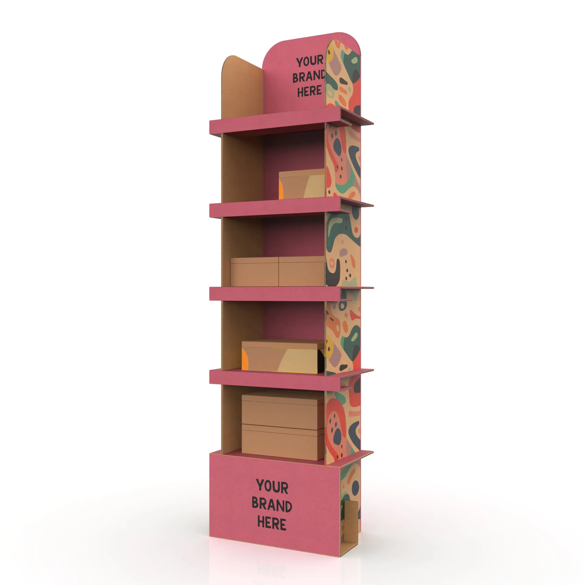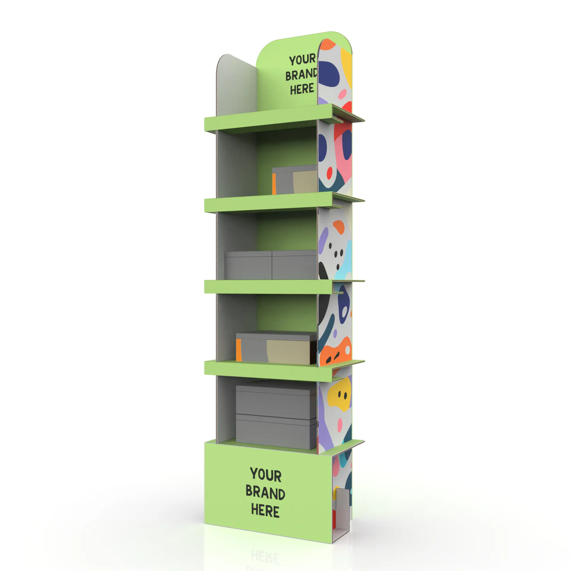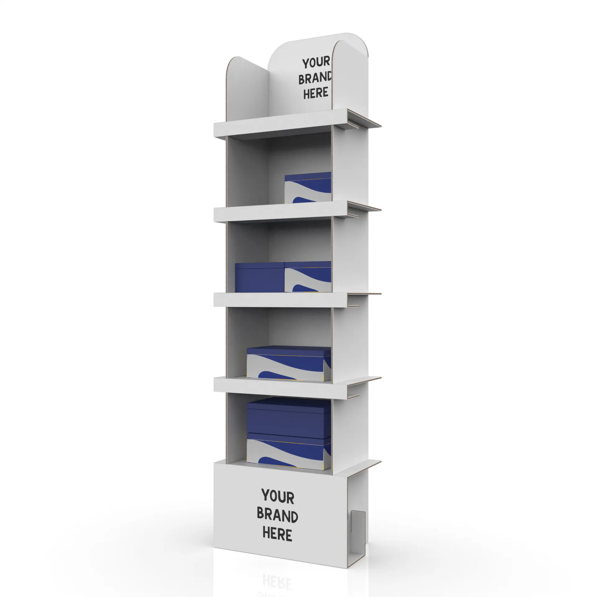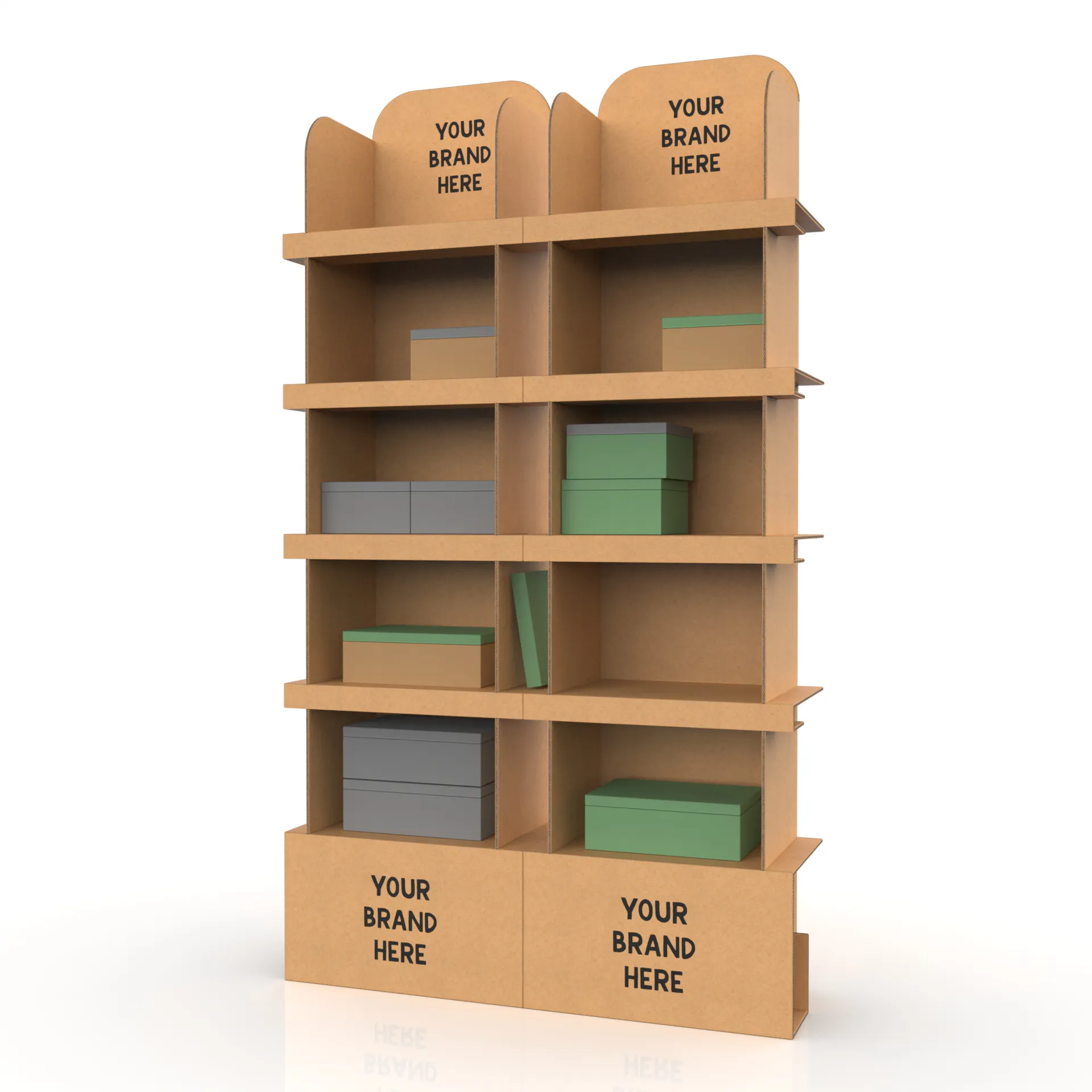 Display-ul modular din carton La Etaj Clasic oferă 5 polițe încăpătoare. Acesta permite extinderea prin combinarea mai multor module pentru un spațiu de depozitare mai mare. Poate fi personalizat integral prin orice tip de imprimare, iar montarea se face simplu și rapid, doar prin îmbinare.