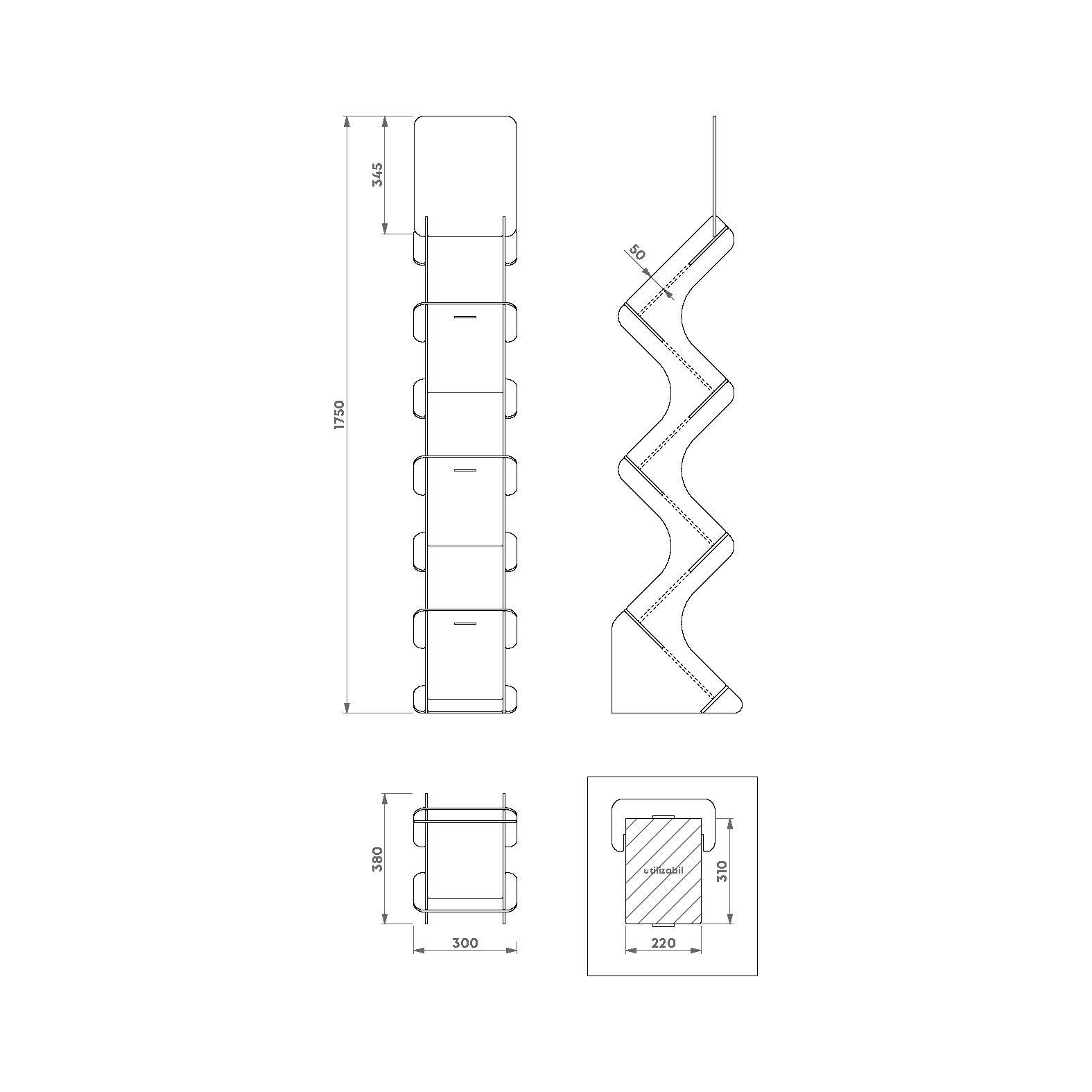 Dimensiuni: 380 x 300 x 1750 mm